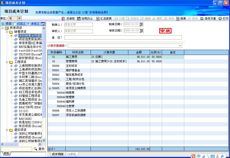 (4)實(shí)現(xiàn)對(duì)項(xiàng)目年度開發(fā)成本、成本預(yù)算、動(dòng)態(tài)成本的管理;