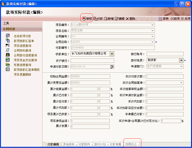 合同總覽:合同款項(xiàng)撥付統(tǒng)計(jì)表、合同分類匯總、合同資金年報(bào)。
