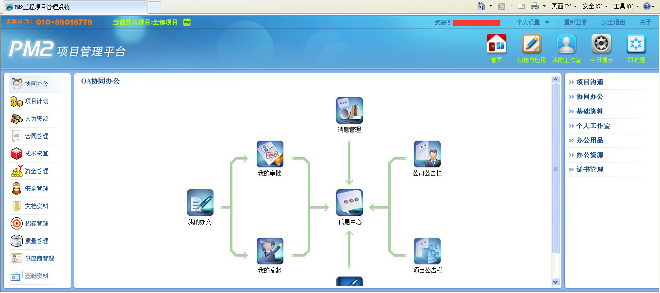 項目管理平臺:包含項目管理、人力資源、成本核算、資金管理